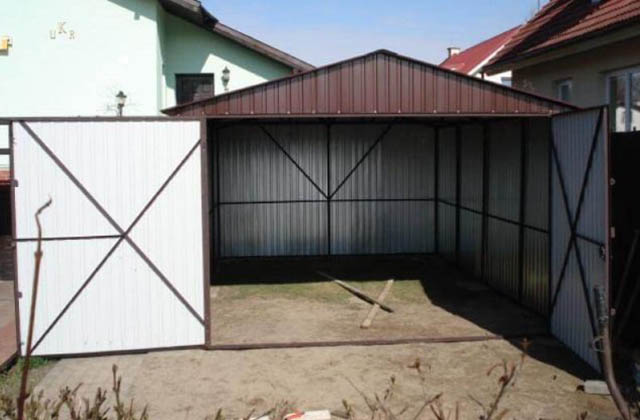 Garaż 3m x 5m o konstrukcji wykonanej z kątowników zimnogietych zabezpieczonych farbą podkładową „minią” koloru czerwonego. Konstrukcja poszyta jest blachą trapezową akrylową w kolorze brązowym (kolorystyka dowolna według potrzeb klienta) pierwszego gatunku, przytwierdzoną za pomocą nitów aluminiowych do szkieletu garażu. Garaż blaszany posiada dach dwuspadowy gdzie wysokość ścian bocznych wynosi 2,13m, wysokość światła wjazdu 2,0m, oraz wysokość szczytu 2,45m. Wyprodukowane elementy boczne, tył , przód wraz z bramą wjazdową łączone są za pomocą śrub. Jako ostatnim elementem montażowym by garaż stanowił całość instalowany jest dach dwuspadowy osadzony na kratownicy oraz poprzeczkach z ceownika połączonych do ścian bocznych. Garaż posiada bramę wjazdowa dwuskrzydłową o wymiarach 3m szerokości i 2 osadzoną centralnie na środku, zaopatrzona w zamek w prawym skrzydle, dwa otwory pod kłódkę oraz rygle w lewym skrzydle. Garaż wykonany jest z odpowiednio dobranych materiałów które zapewniają odpowiednia jakość, trwałość oraz funkcjonalność na najwyższym poziomie. Ze względu na indywidualne potrzeby wykonujemy garaże według projektu klienta o dowolny wymiarach z bardzo bogatą bazą elementów dodatków.