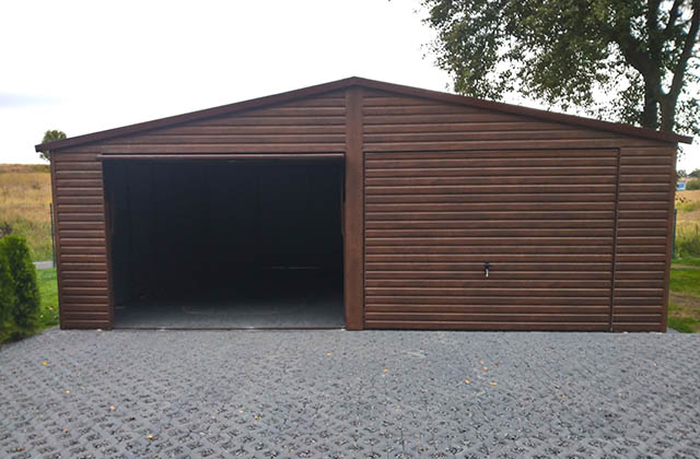 Nieustannie staramy się sprostać oczekiwaniom wszystkich, nawet tych najbardziej wymagających Klientów. Dlatego w naszej ofercie znajdą Państwo nowoczesne i cechujące się bardzo estetycznym wyglądem, garaże blaszane drewnopodobne. Tak jak większość przygotowywanych przez nas konstrukcji również te wykonane zostały z wytrzymałej blachy ocynkowanej. Jednak w tym przypadku na ścianach garażu zastosowano przetłoczenia, przypominające swoim wyglądem drewniane deski. Dzięki wykorzystaniu blachy imitującej drewno, cała konstrukcja nabiera bardziej lekkiego, eleganckiego i naturalnego kształtu oraz korzystnie wpływa na wygląd prywatnej posesji lub jakiegokolwiek miejsca, w którym się znajduje.